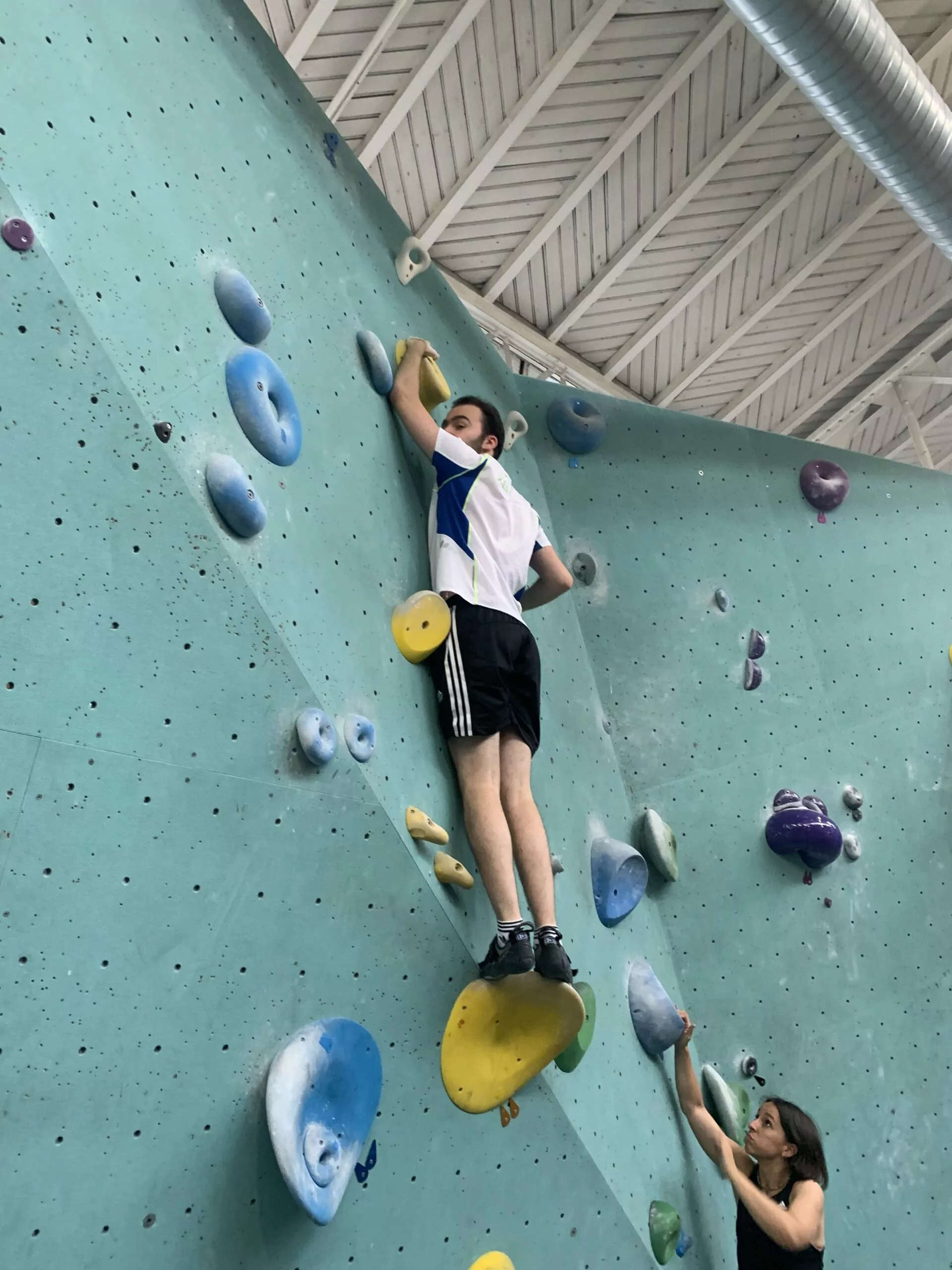 Une soirée escalade de blocs dans une salle parisienne, guidée par un pro.